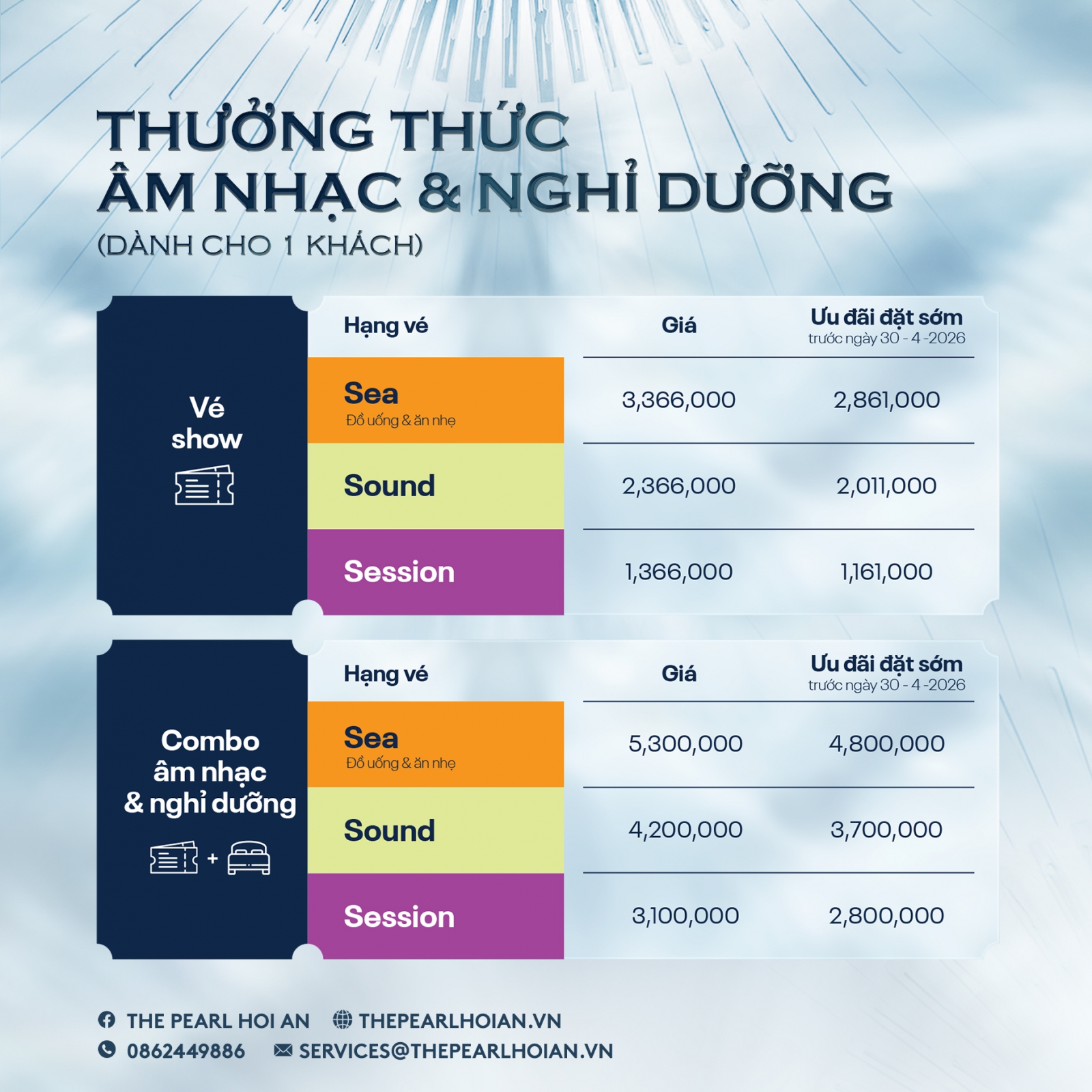 Nhận ngay ưu đãi Early Bird khi đặt vé trước 30/04 và cùng The Pearl Hoi An viết nên chương đầu tiên của SEA SOUND SESSION!
